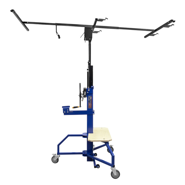 - Позволяет поднимать листы гипсокартона вручную или автоматически при помощи шуруповерта. Его зубчато-реечный механизм позволяет поднимать листы ГКЛ без усилий.